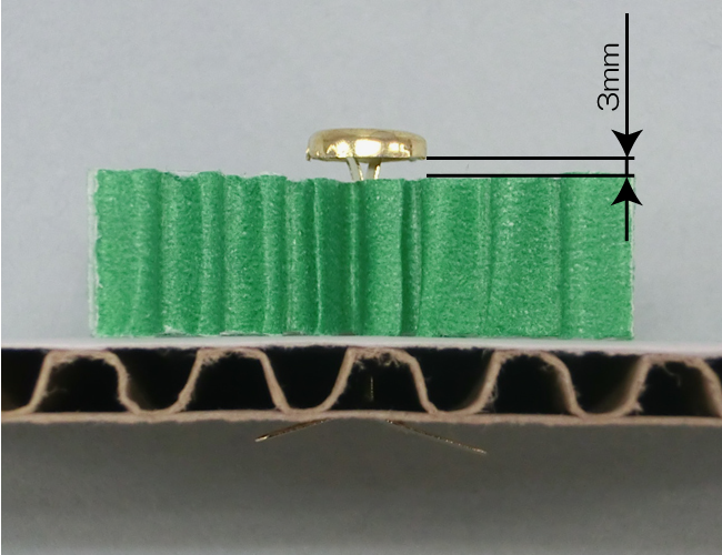 ⑥割りピンをカラーダンボールとの間に3mmほどのすき間ができるように片面白ダンボールにさします。