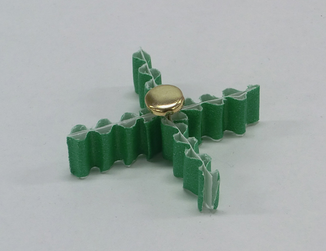 割りピンと片面カラーダンボールで羽根車をつくることができます。
