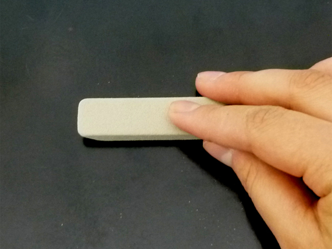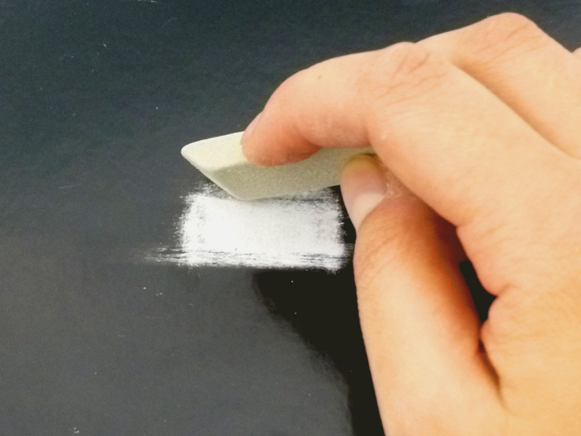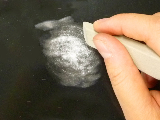 ①砂消しゴムの広い面を下にして持ち、面の部分でこすります。