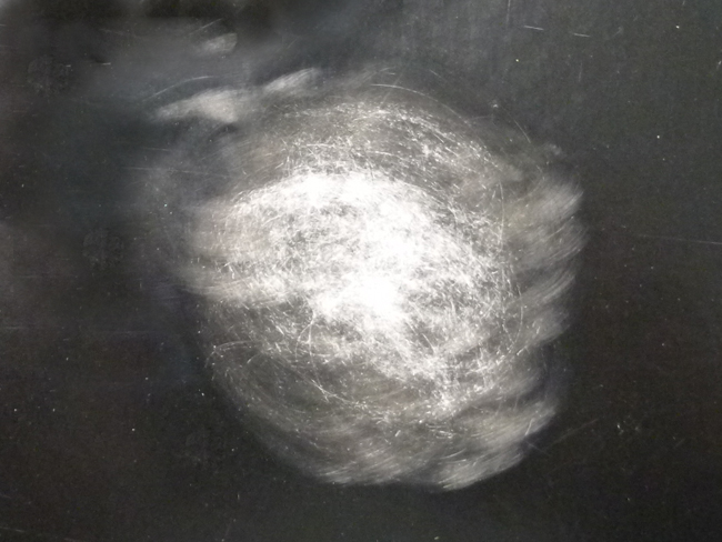 ①濃く描いた模様のふちを、砂消しゴムで小刻みにこすります。