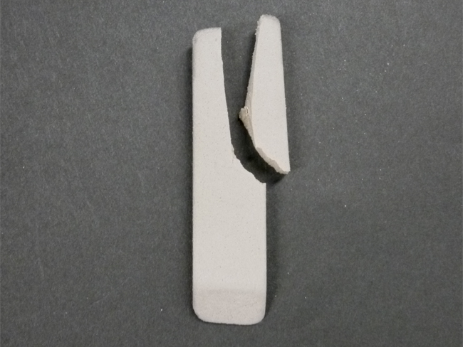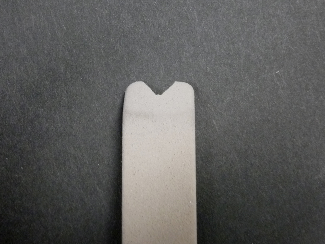 ①砂消しゴムの先をカッターナイフでV字に切り取ります。