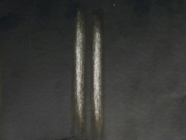 ②砂消しゴムの先でこすると、2本の平行な線を描くことができます。