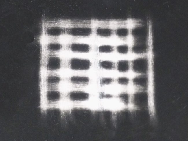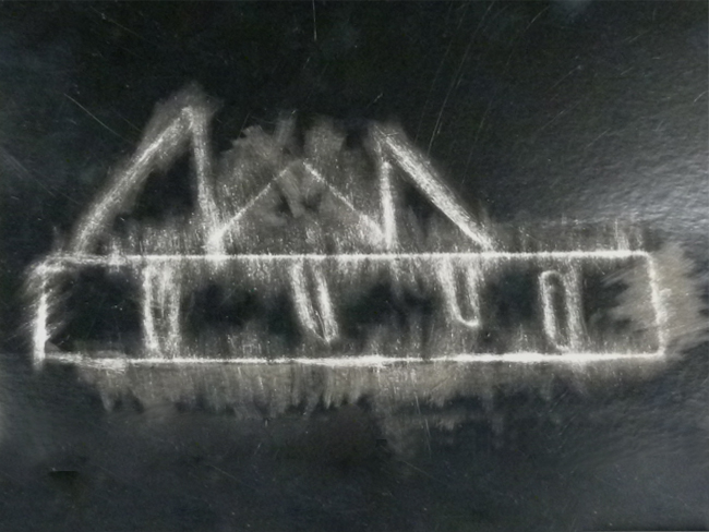 消しゴムスクラッチボードの下にものを置いて消すと、ものの輪郭線を描くことができます。