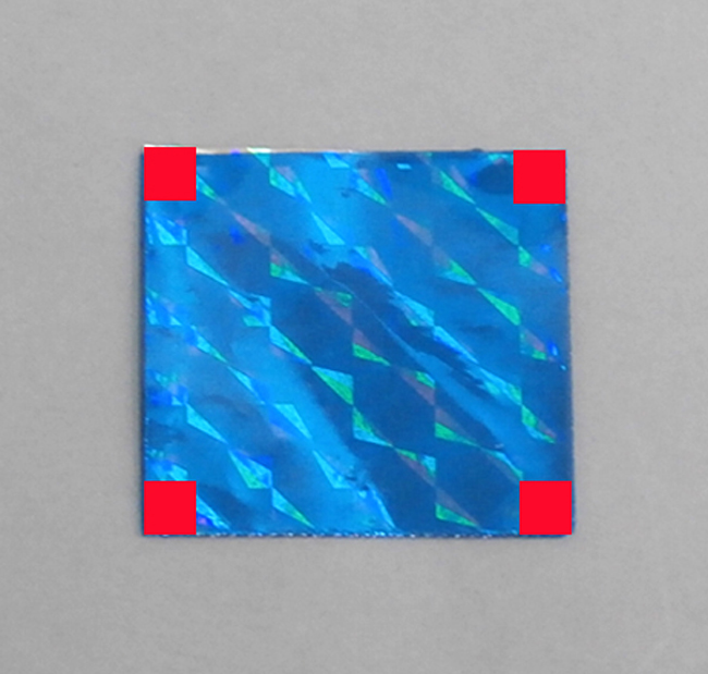 ホログラムシートの角にのりを少しつけて、ネオセロハンを貼りましょう。