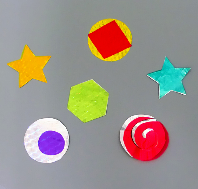 ネオセロハンやホログラムシートを小さく切ると、小さな飾りをつくることができます。