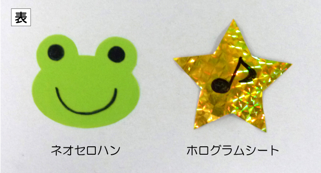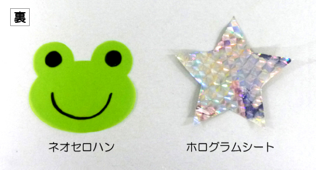 ホログラムシートの上にネオセロハンを重ねるとホログラムシートの柄が透けて見えます。