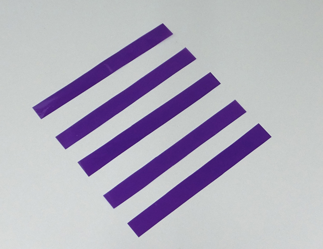 ①ネオセロハンやホログラムシートを細長く切ります。長いものを2本、中くらいのものを2本、短いものを1本切りましょう。