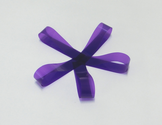 ※③のときに内側にねじって貼り合わせると、形の違うリボンができます。