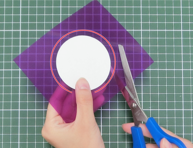 ①切り抜いた窓より1cm程度大きくネオセロハンを切ります。