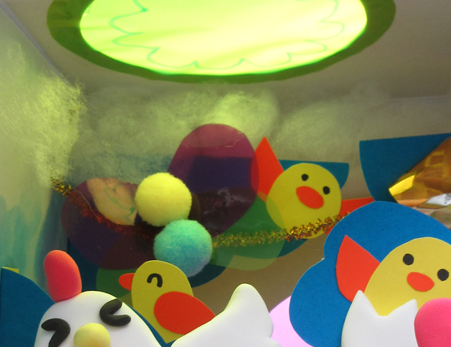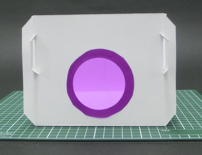 貼るネオセロハンの色によって、箱の中にさし込む光の色が変化します。