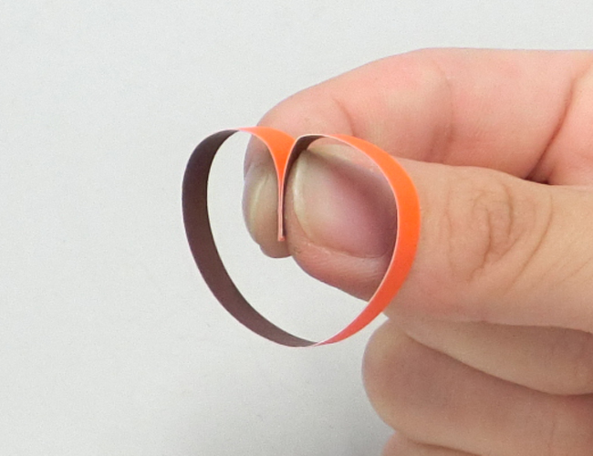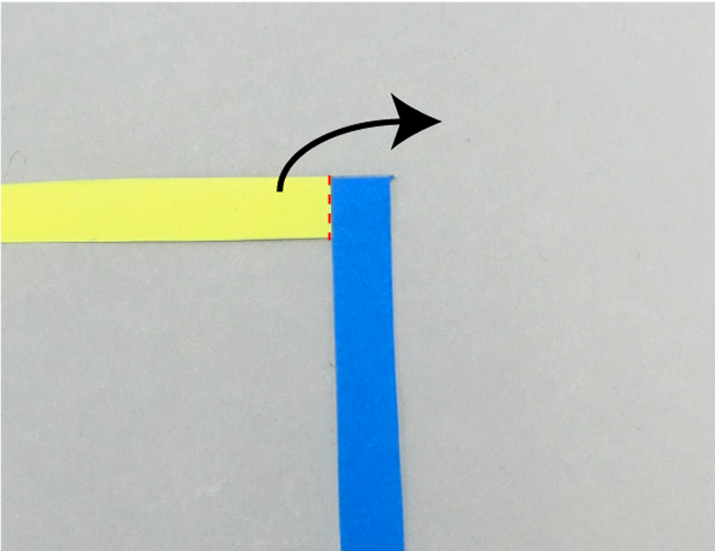 ①四角形に切ったカラーフォーメーションの両端を点線にそって折ります。