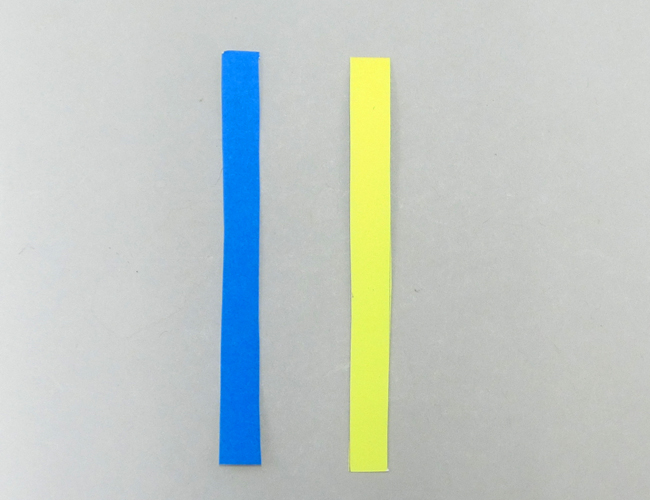 ①長方形に切ったカラーフォーメーションを半分に折り、折り目をつけます。