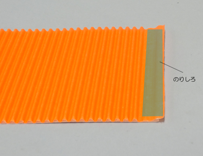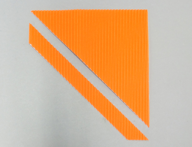 ①ダンボールの目に対して斜めに、細く切ります。