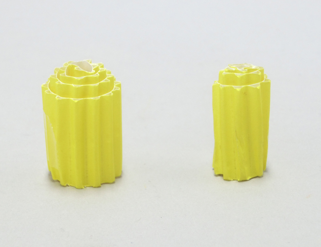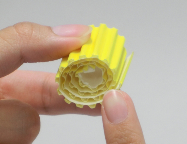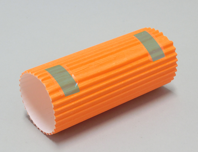 片面ダンボールは曲げやすく、そのまま丸めて円柱をつくることができます。貼り合わせる部分を平らにしてのりしろをつくると、接着面が広くなりしっかり固定することができます。