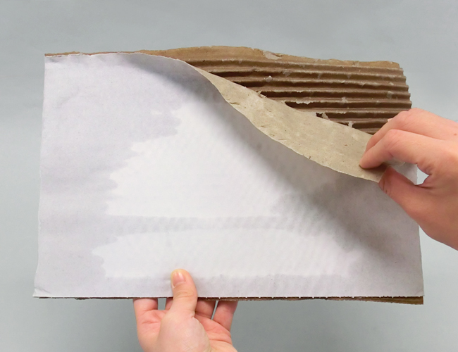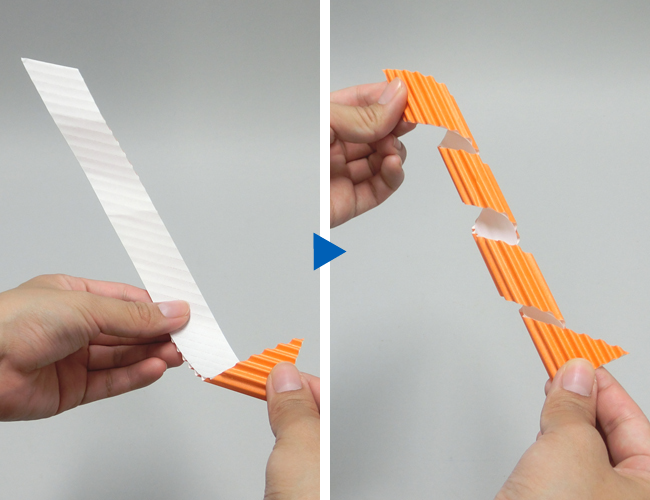 ②ダンボールの表面をはがします。