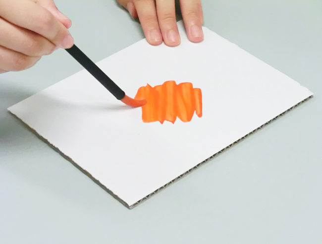 マーカーで広い面をぬるときは、同じ方向にマーカーを動かすとムラが少なくきれいにぬることができます。