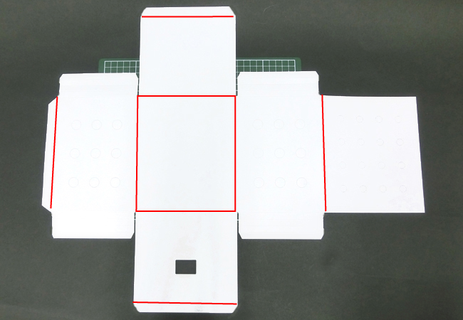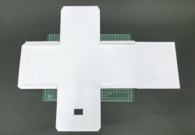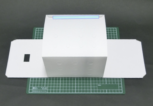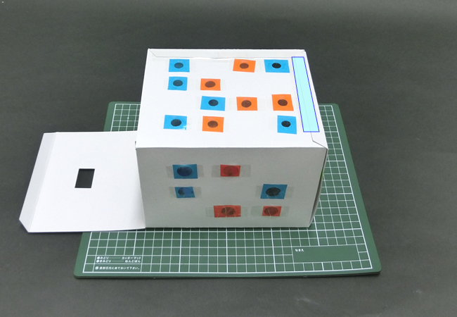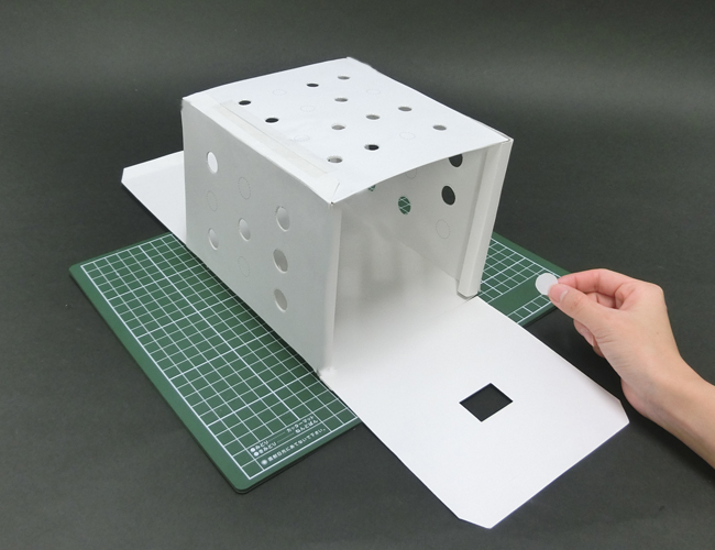 ⑤のりしろをセロハンテープで貼って、箱を組み立てます。