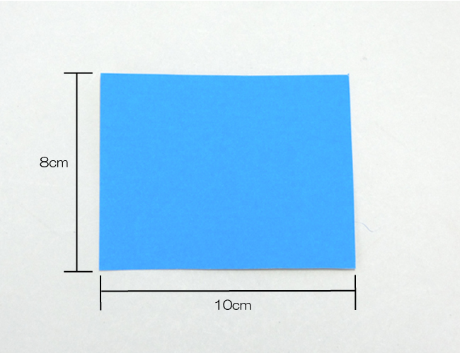 ①長方形に切った紙を半分に折ります。
