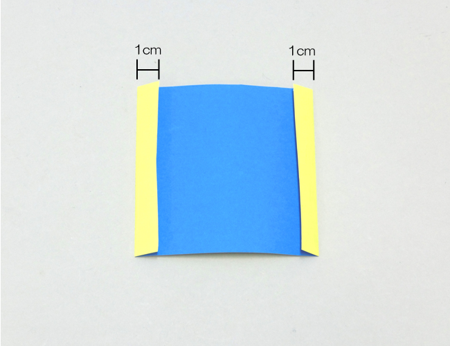 ②両端から1cmほどのところをそれぞれ内側折り、のりしろをつくります。