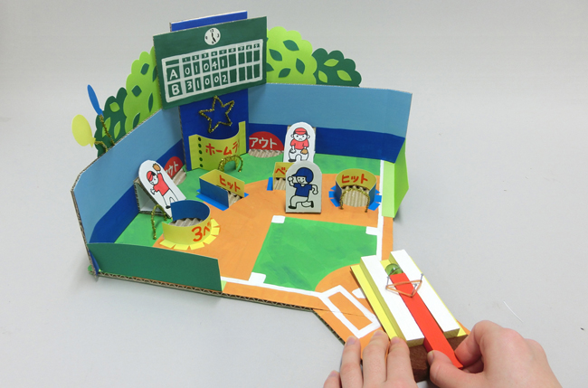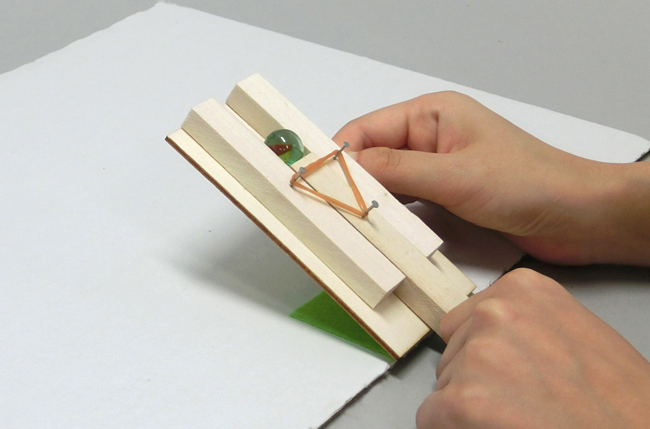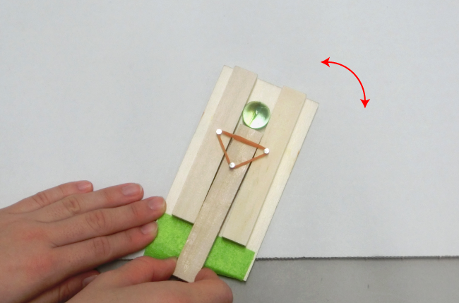 角度を調節しながらビー玉を飛ばして遊ぶことができます。ビー玉が遠くへ飛びすぎないように気を付けましょう。