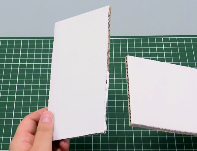 ①ダンボールの面を重ねます。