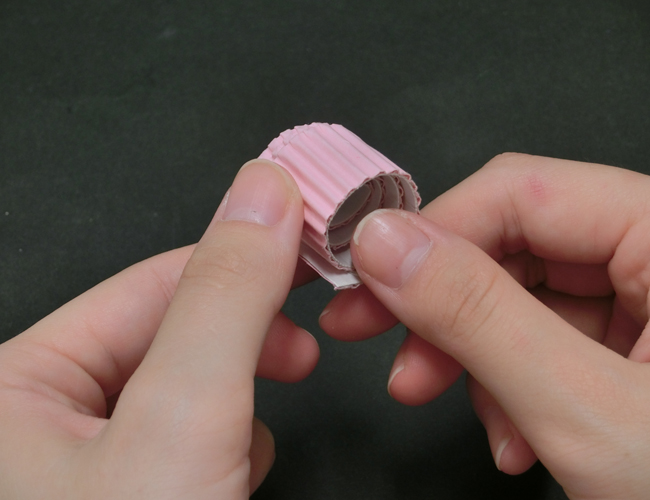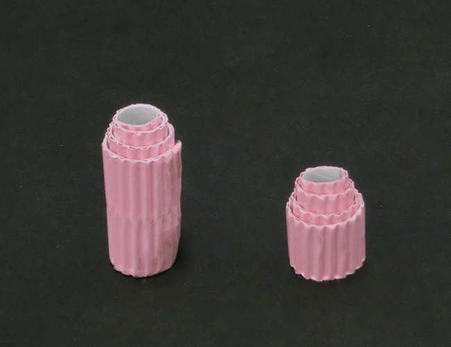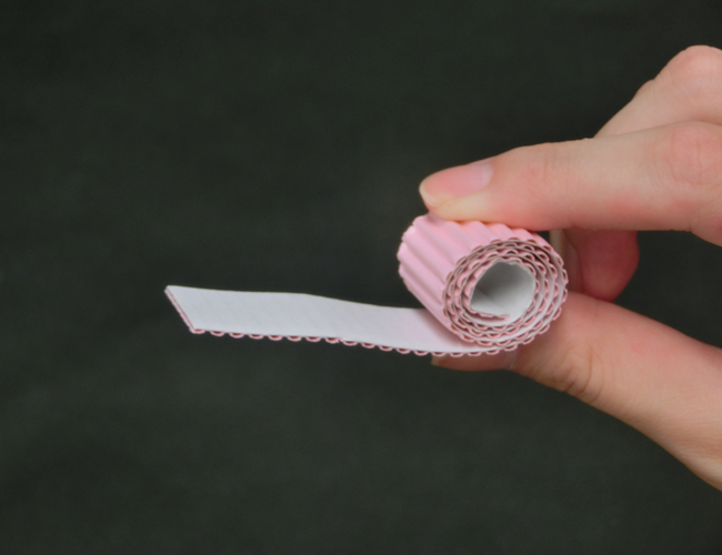 ③巻き終わったあと、パステル片面ダンボールの間にすき間をあけると完成です。