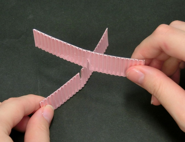 ②同じものをもう1個つくり、切り込みをかみ合わせます。