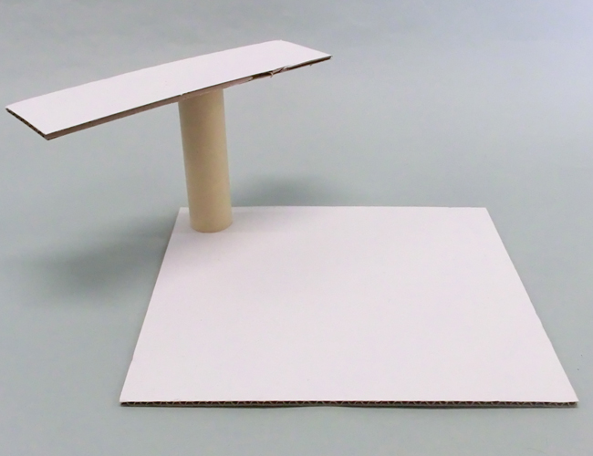 ⑥割りピンをカラーダンボールとの間に3mmほどのすき間ができるように片面白ダンボールにさします。