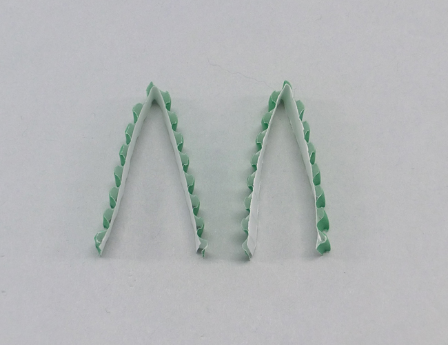 ②2本のカラーダンボールをそれぞれ半分に山折りします。