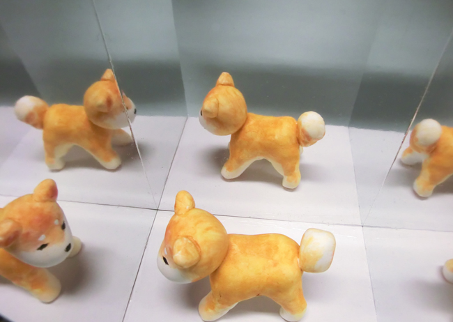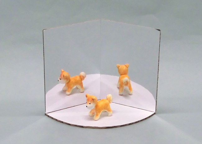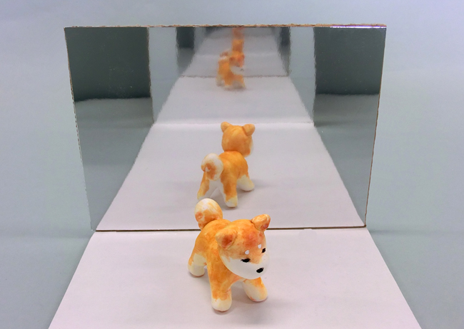 ミラーの間に置いた飾りは、連続的に映って見えます。