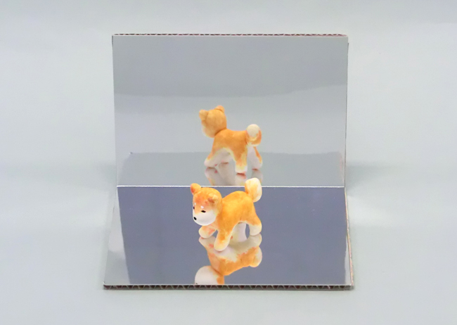 床面にミラーを貼ると、飾りの裏側も見ることができます。