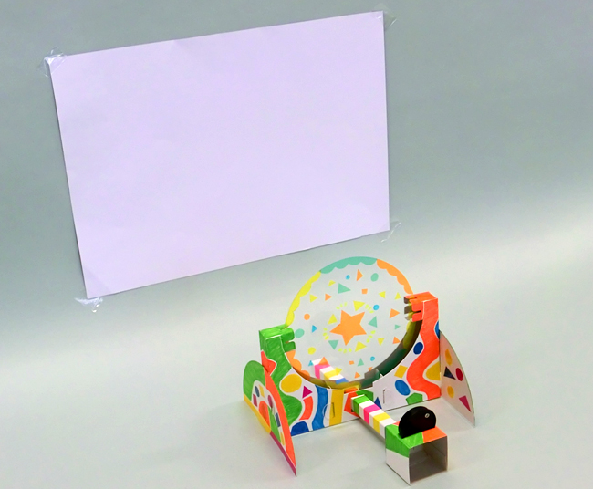 ※壁が白くないときは、白い紙を壁に貼ってスクリーンをつくると、はっきり映し出すことができます。