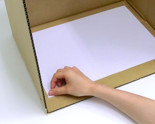 ③白い紙を箱の奥に貼ります。