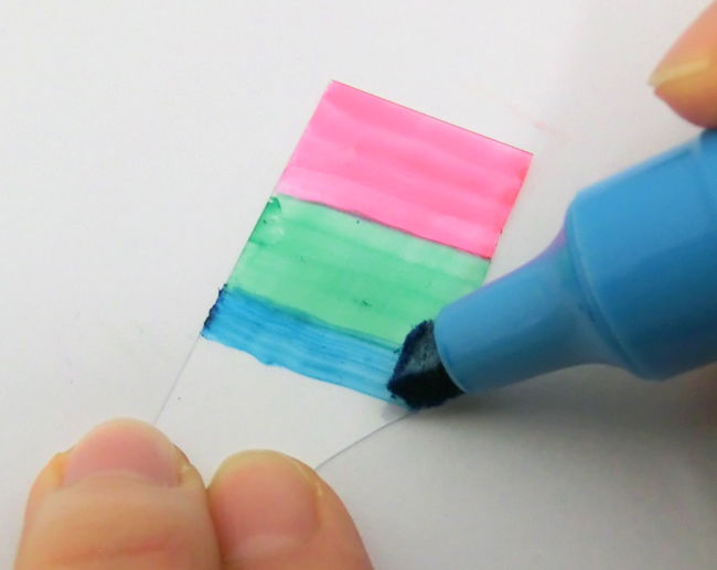 ②切り取った部分に油性マーカーで色をぬります。