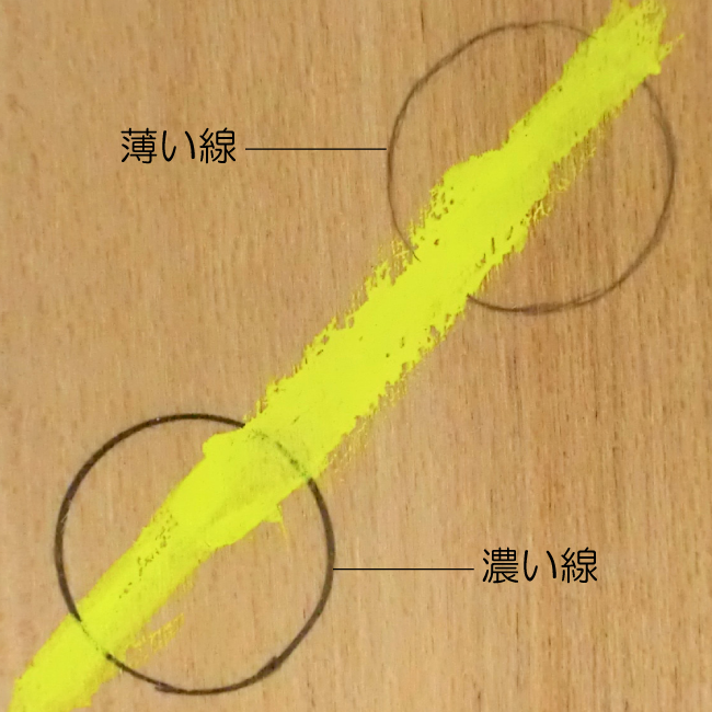 下絵の線は、濃く描くと絵の具の下から見えてしまうことがあるので気をつけましょう。