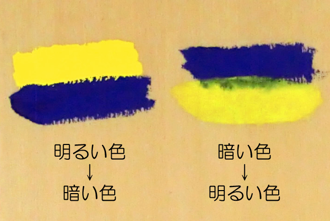 明るい色から暗い色の順にぬると、きれいに色を重ねることができます。