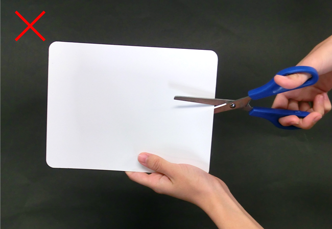 ※スチール白板をはさみで切ってはいけません。切り口でけがをすることがあるので、スチール白板は切らずに使いましょう。