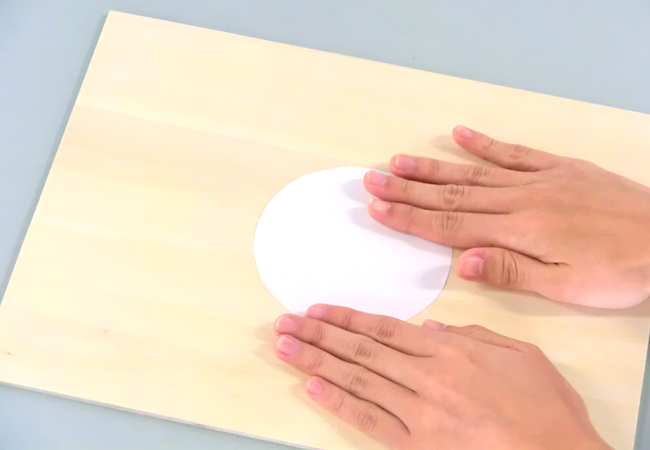 ④板に貼りつけて、上から手で押さえます。