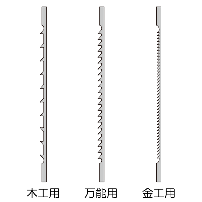 電動糸のこぎりの刃にはいろいろな種類があり、切る材料によって使い分けます。