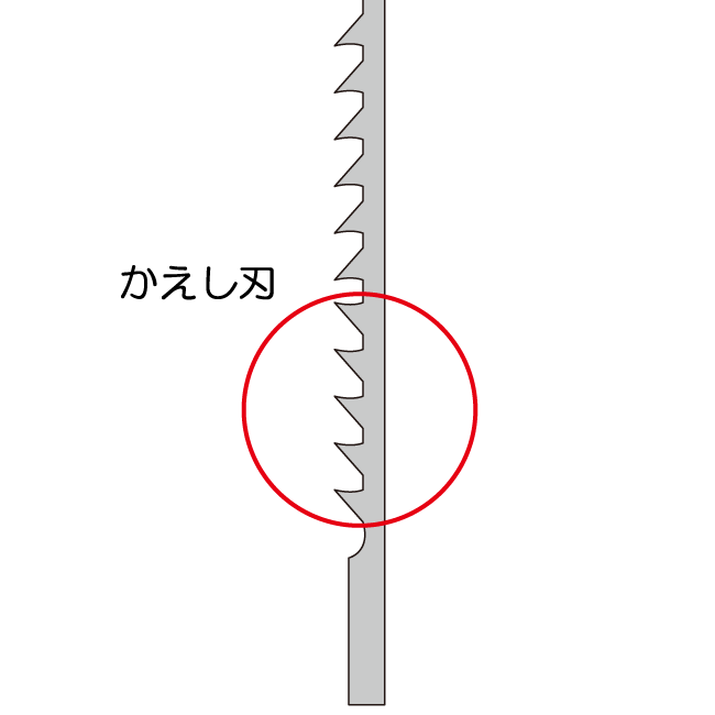 木工用の刃の下部にはかえし刃があります。かえし刃が板の切り口に残ったささくれやバリを切断し、きれいに仕上げることができます。