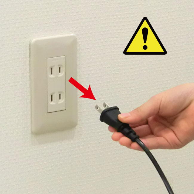 ①慌てずにまず本体の電源スイッチを切り、プラグをコンセントから抜きます。