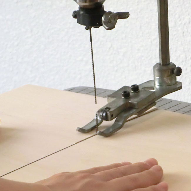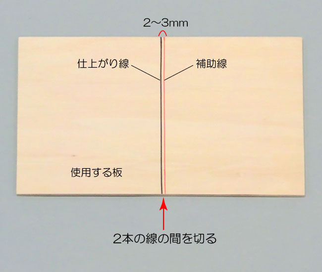 刃の幅を考えて、仕上がり線の2~3mmはなれたところに補助線を引き、2本の線の間を切りましょう。