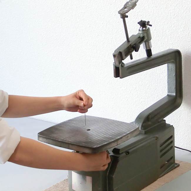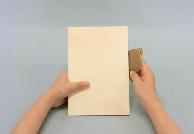 切り抜いた板の角や切り口を紙やすりで磨きます。