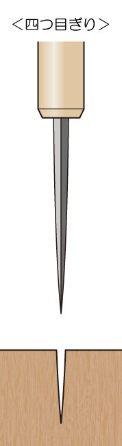 刃の形が四角すいになっています。くぎの下穴をあけるのに適しています。