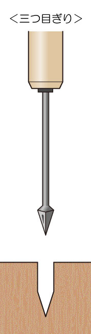 刃先が三角すいになっています。木ねじの下穴をあけるのに適しています。