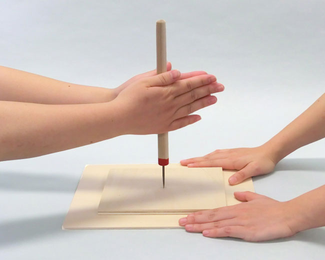 きりを使った穴のあけ方を確認しましょう。