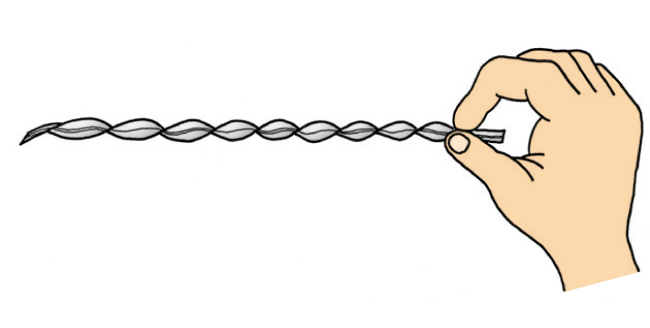 ②はずしてのばすと、らせんができます。