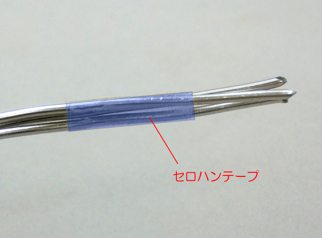 タワーの立たせ方 1.骨組みをつくる 2.自立させる 1.骨組みをつくる タワーの脚にする同じ長さの針金を3~4本と、短い針金を1本用意します。 ①脚にする針金をたばね、先が1~2cmほど出る位置に短い針金をしっかり巻きつけます。 ②針金の先を丸めます。 あらかじめ、先から1~2cmほどの位置をセロハンテープで固定しておくと、作業がしやすくなります。 2.自立させる ①脚を開きます。 ②脚の先を外側に丸く曲げると、タワーが安定します。 ③バランスが良くなるように曲げ方や脚の広げ方を調節しましょう。