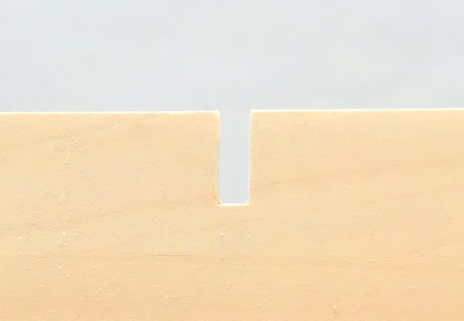 ③電動糸のこぎりで印の線にそって切ると、切り込みができます。