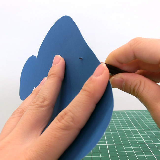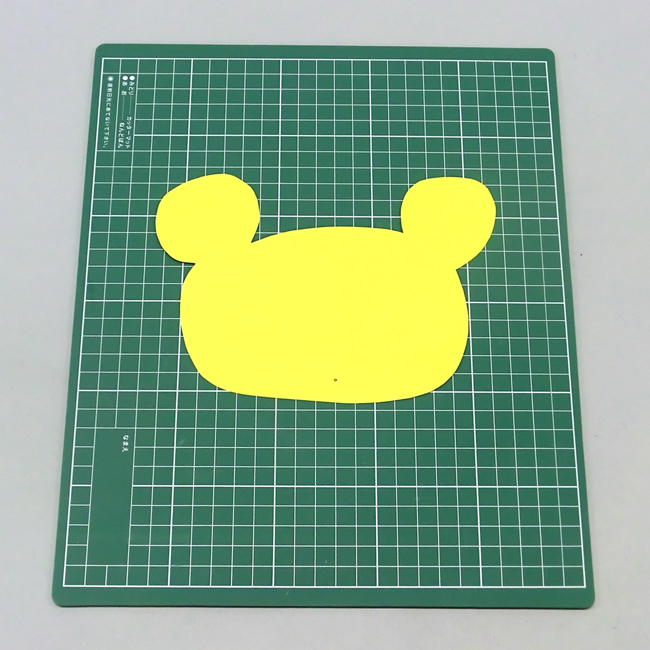 ①机に傷がつかないように、穴をあける両面カラー工作紙の下に工作マットをしきます。